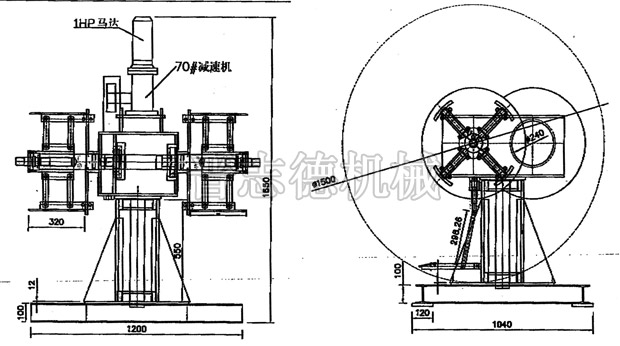 雙頭材料架在使用時,可在兩側的漲縮卷筒上同時套裝兩卷材料,當使用完一卷材料時,可將旋轉座轉過180°,直接換用另一卷材料,在另一卷材料使用時,重新給漲縮卷筒裝載好新的料卷,因此在整個生產(chǎn)線沖壓生產(chǎn)過程中,無需等待料卷的裝載過程,從根本上提高了生產(chǎn)效率;另一方面,由于兩卷料卷裝載在同一根固定軸的兩側,因此基座和旋轉座上的轉矩非常小,整體結構穩(wěn)定性較高,且從根本上確保了材料架的使用壽命。