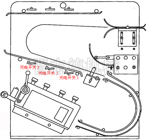 S型沖床同步整平機實際使用時,材料通過拉料輪進入S型軌道,經(jīng)過整平輪整平,消除材料原有應(yīng)力及變形。整平厚度以及平直度由整平調(diào)節(jié)手柄調(diào)整。變得平整后的整平材料,進入S型軌道。處于S型軌道中的材料,依據(jù)所處的位置,光電開關(guān)1、光電開關(guān)2和光電開關(guān)3會給予變頻器相應(yīng)的頻率指示,從而控制馬達的轉(zhuǎn)速,達到與沖床相符的送料速度。