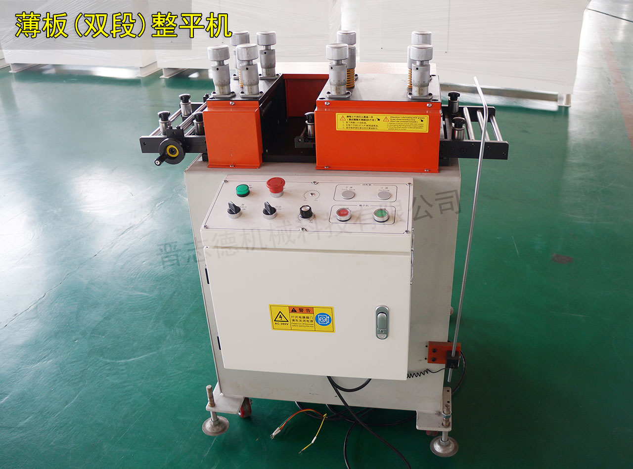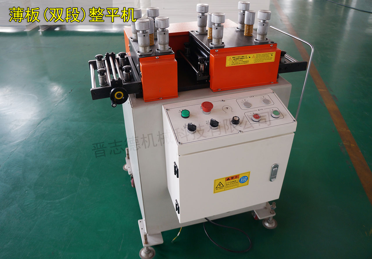 晉志德雙段式精密整平機(jī)的出現(xiàn)就從根本上解決了此種不足之處,其通過在一個(gè)整平機(jī)構(gòu)中設(shè)置兩組整平組件,從而實(shí)現(xiàn)對(duì)材料的多次間歇性整平,而且每組整平組件中作為主動(dòng)可調(diào)的上整平滾輪的數(shù)目逐步增加,大排距粗矯,小排距精矯,從而達(dá)到高精密整平之需求。