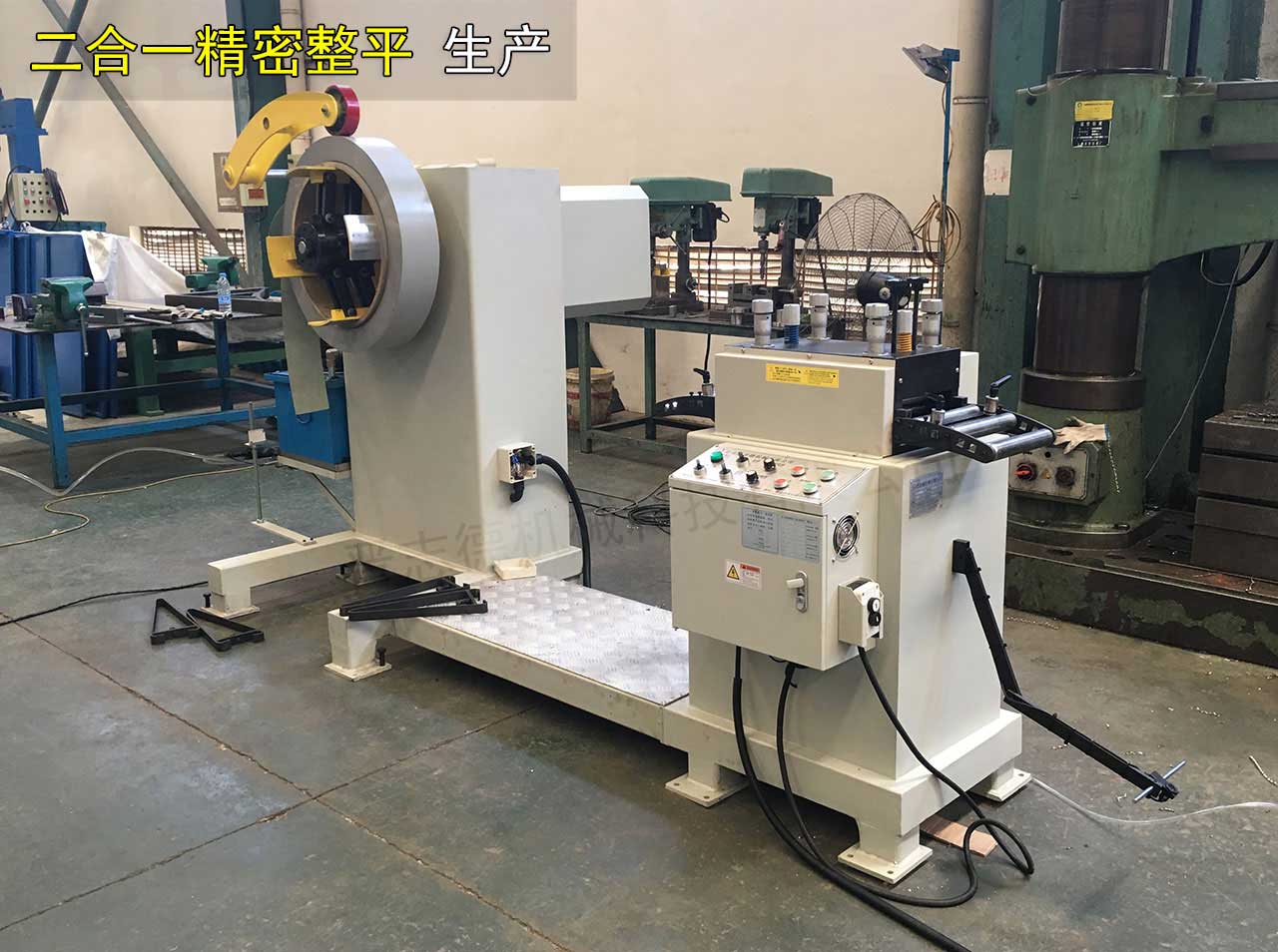1、本系列二合一精密整平機,機體體積在1.6mm左右,采用下入料的整平方式,適用于0.3-2.0mm厚各種精密材料的開卷整平。同時在控制上:采用對射式光電感應(yīng)控制出料、油壓擴張控制開卷、四點立式微調(diào)方式進行整平調(diào)節(jié)。